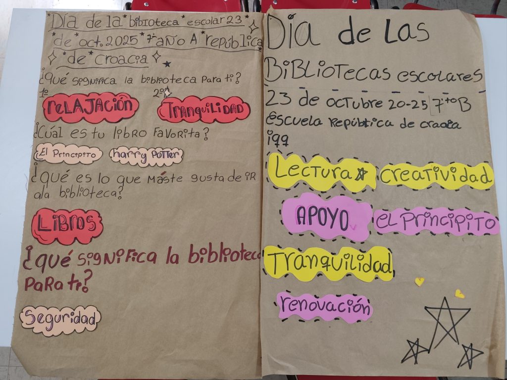 “En general los alumnos consideran la Biblioteca Escolar como un espacio de calma, de aprendizaje, de compartir, de juego, de silencio, un lugar de paz lleno de conocimiento y que sirve para relajarse. También escribieron lo que más les gusta de la biblioteca y el nombre de sus libros favoritos que encuentran allí”, explican desde la Biblioteca CRA del colegio.