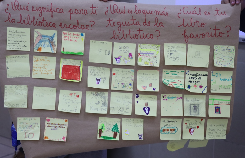 La actividad constó de dos fases: en la primera se realizó una encuesta breve a estudiantes de 1° básico a 6° básico y en la segunda se montaron dos paneles visibles en la biblioteca y en el pasillo del colegio para exhibir las respuestas de las y los estudiantes.
