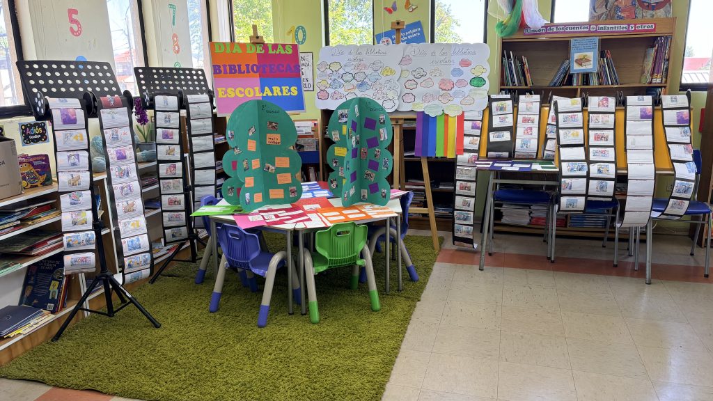 De manera paralela, “a estudiantes de tercero hasta sexto básico los invitamos a expresar a través de palabras, frases o dibujos, qué significa la biblioteca de su escuela para ellos”, agregan en la biblioteca CRA de la Escuela Brasilia