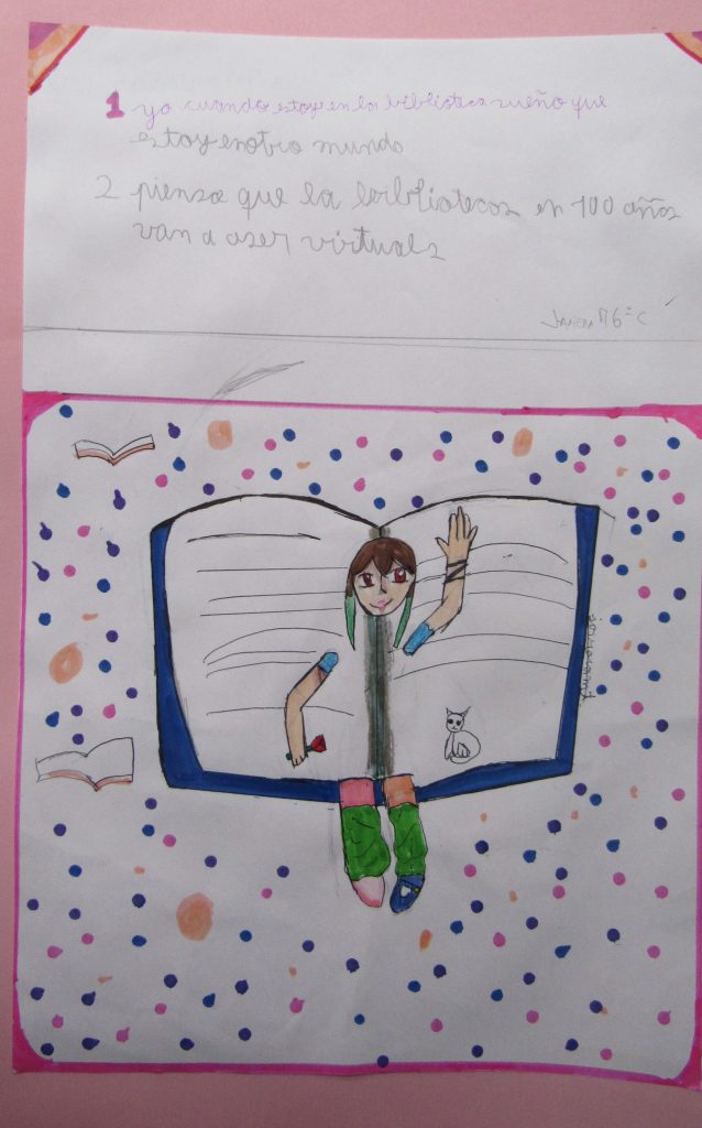 “La actividad consistió en leer el texto de Laura Gallego y explicarles la importancia de la biblioteca e interpelarlos a ellos por medio de una pregunta o dibujo qué les gustaba de la biblioteca?…y esto resultó en un libro grande con muchos dibujos y respuestas variadas”, explica Victoria Mujica, encargada CRA.