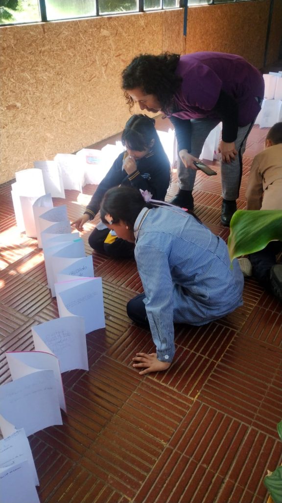 Con la actividad se buscó reconocer la importancia de la Biblioteca CRA como espacio de aprendizaje, lectura y encuentro en la escuela y la comunidad educativa. Consistió en crear un acróstico con cada nombre de las participantes. De cada letra debía nacer una frase o pequeño verso, o palabra formando un texto que expresara ideas, emociones o valores personales. De esta manera, se presentaron los trabajos en cartulinas que podían incluir un dibujo o un recorte alusivo a la lectura, los libros o la biblioteca.